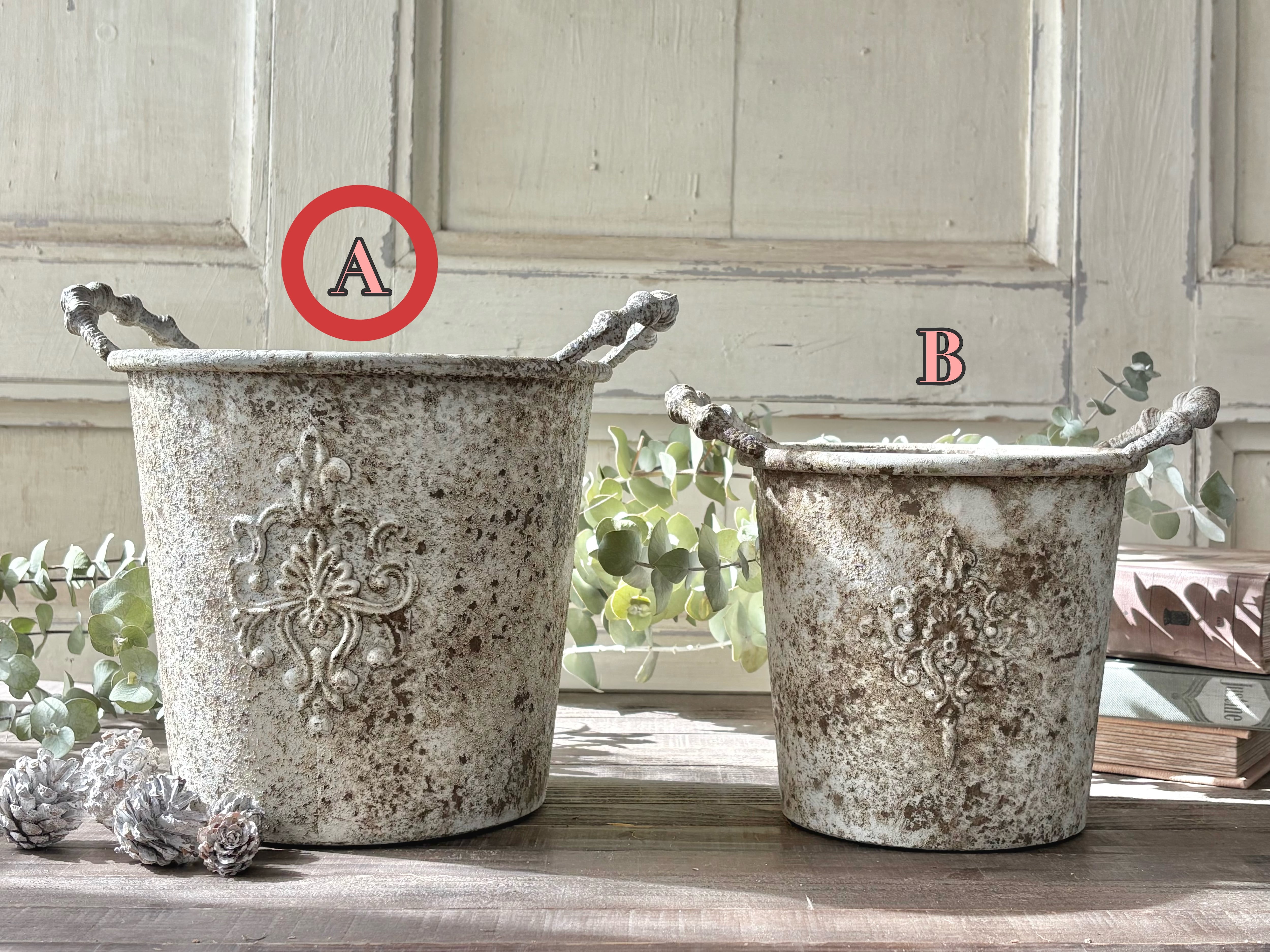 ※こちらはアンティークブリキポットシリーズ (A)の商品です(画像1枚目の奥左側 赤丸の商品)